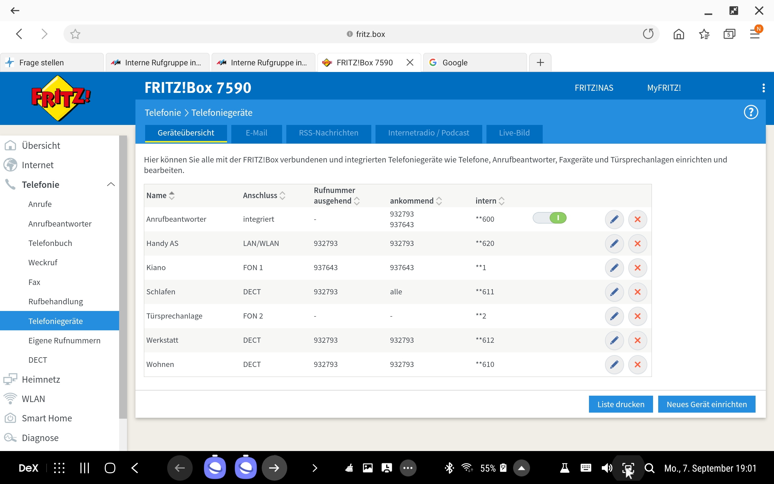 Mit einem Telefon funktionierte es, jetzt wo wir noch zwei Telefone dazu gekauft haben bekomme ich die Programmierung nicht hin.