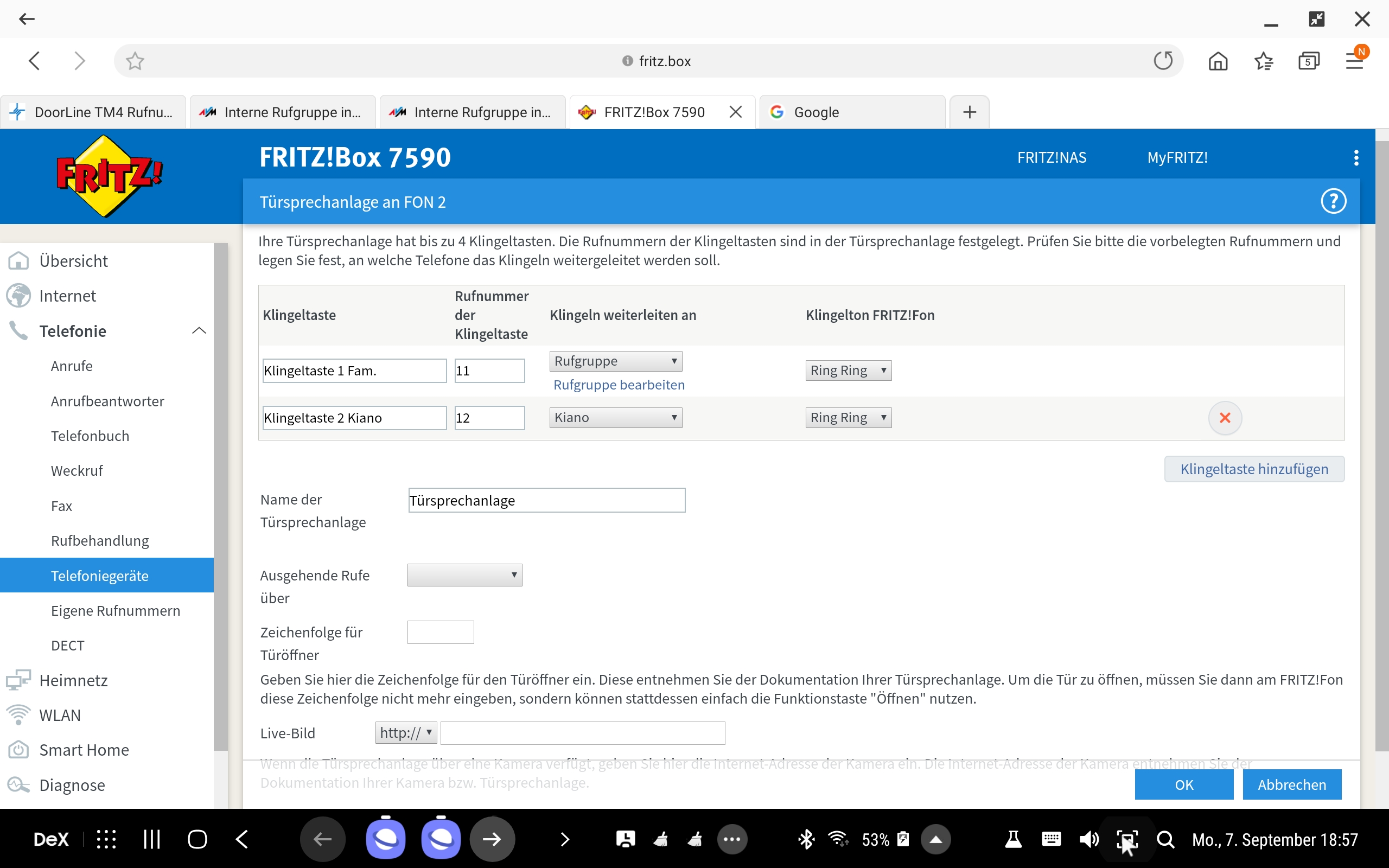 DoorLine TM4 - Fritzbox 7590; bestimmte Telefone auf Klingeltaste "1"