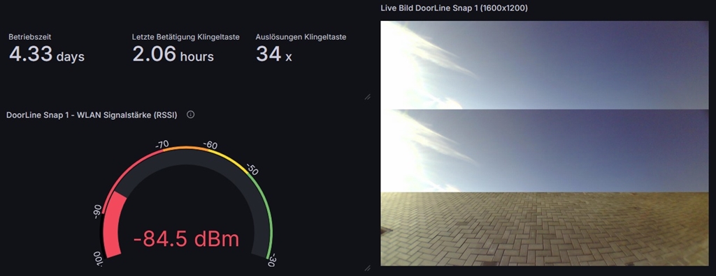 Gestern wurde 6x der Klingeltaster betätigt und ich habe via FritzFon und Pushover, HomeAssistant (Webhook) und Alexa (Webhook) Benachrichtigungen erhalten, ohne das dass Kameramodul wieder abgestürzt ist. Aktuell läuft es seit 24h, auch wenn der WiFi RSSI nicht optimal ist: