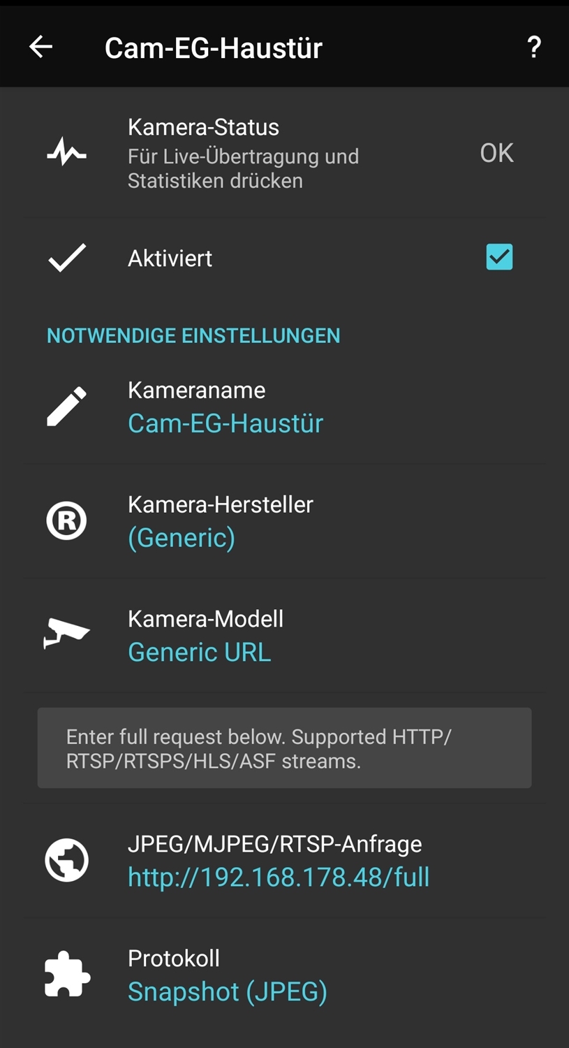 Alternativ kann man auch mit Video Streaming Software z.B. TinyCamPro die Einzelbilder abgreifen und somit in kurzen Abrufintervallen als Stream darstellen. (Nutze ich auf Amazon FireTV am Fernseher und klappt super 👍🏻)