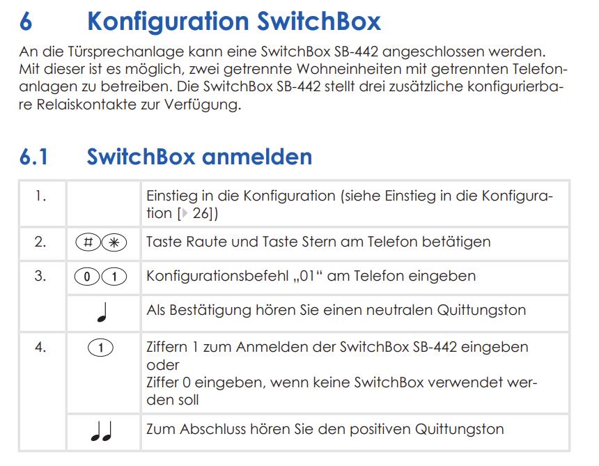 Haben Sie auch die SB 442 Switch Box an der Doorline angemeldet , und wie in der Anleitung, mit 5 Kabeln mit der Doorline verbunden . ?