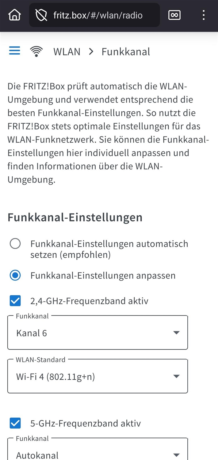 Ich beobachte das und melde mich wieder, auch bei Erfolg. Ein fixer Kanal wäre in meinem Fall durchaus eine Lösung, weil am geplanten Einsatzort lange nicht so viele WLAN-Netze sind wie hier am Test-Ort.